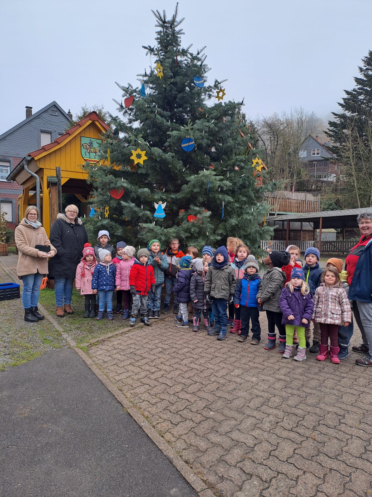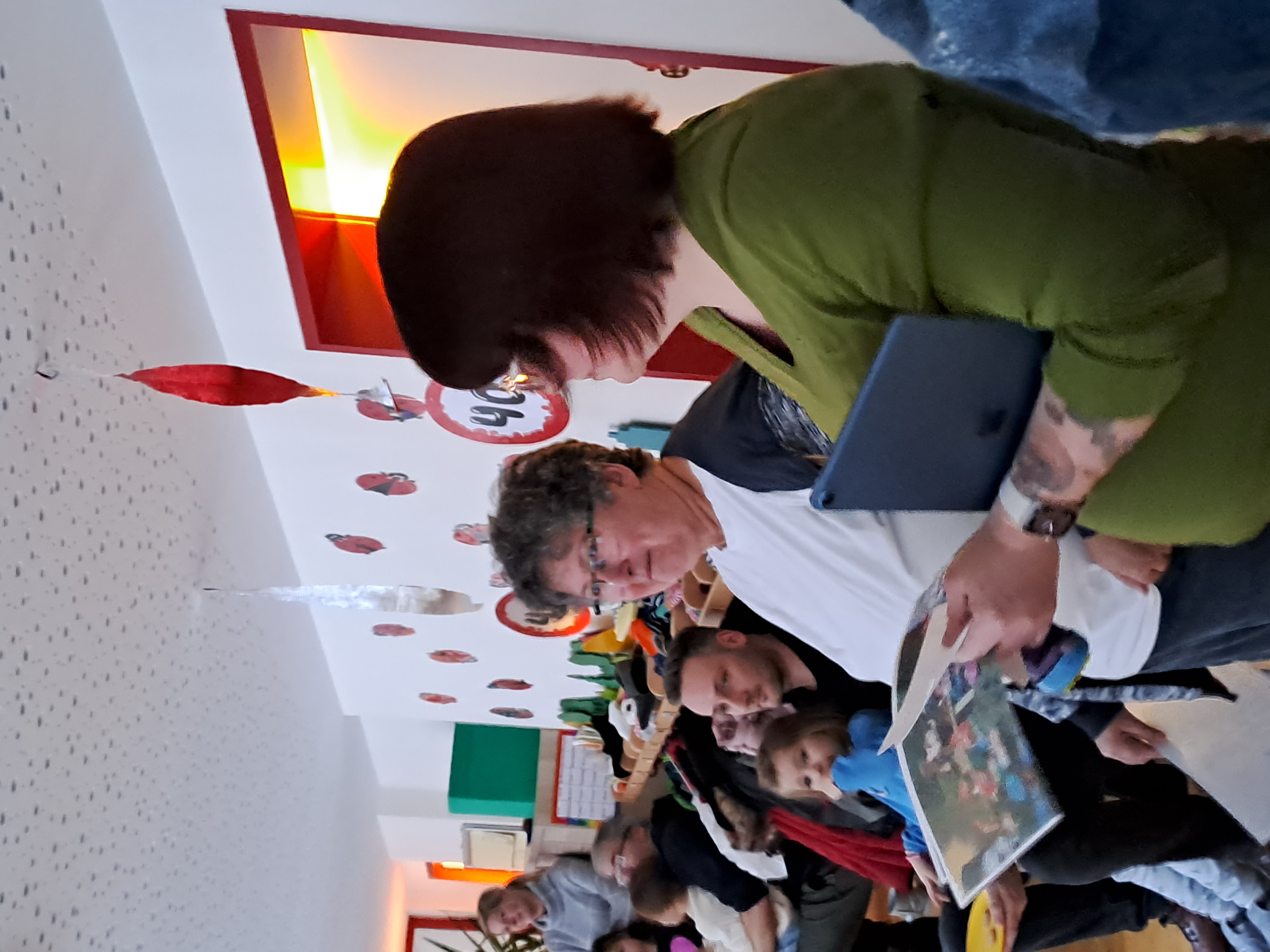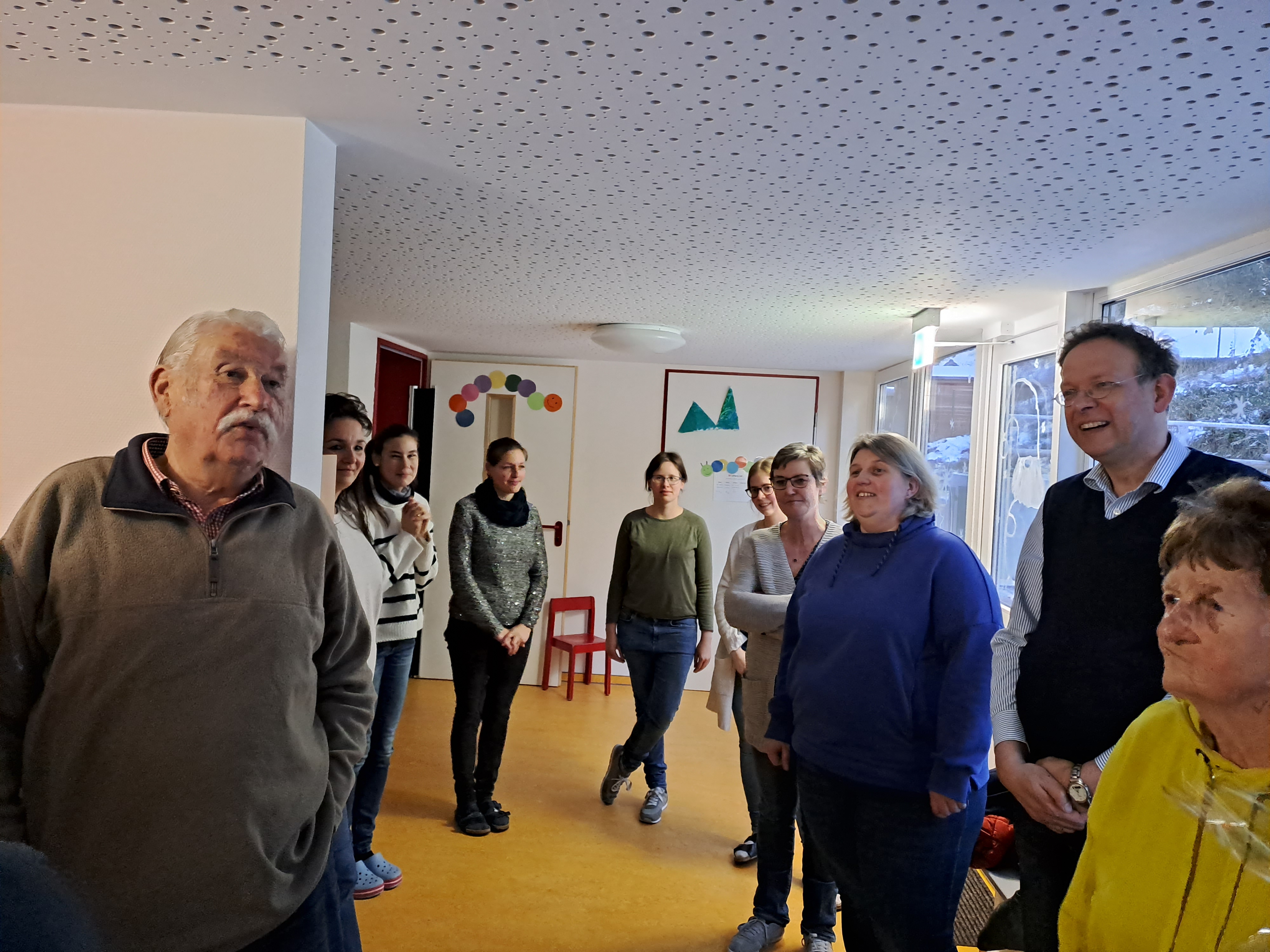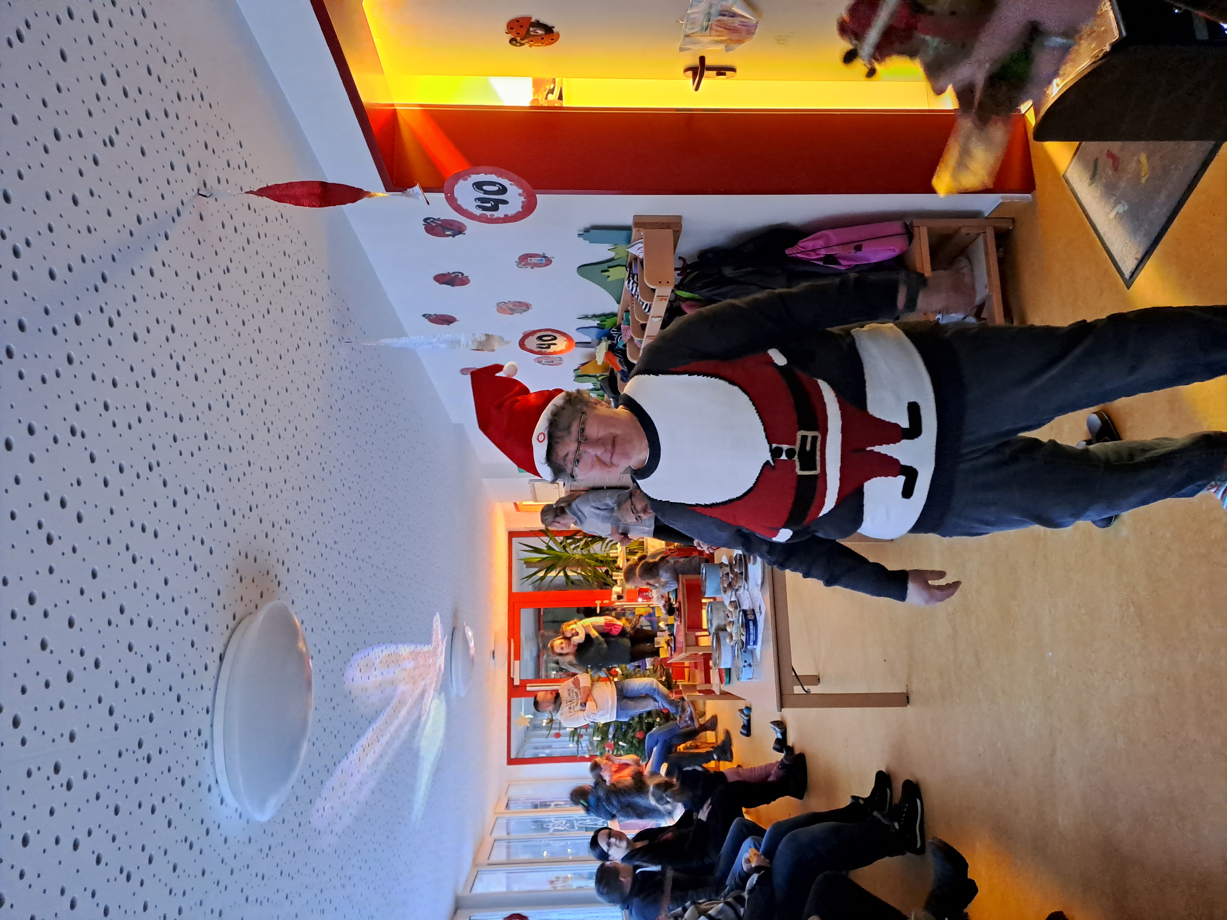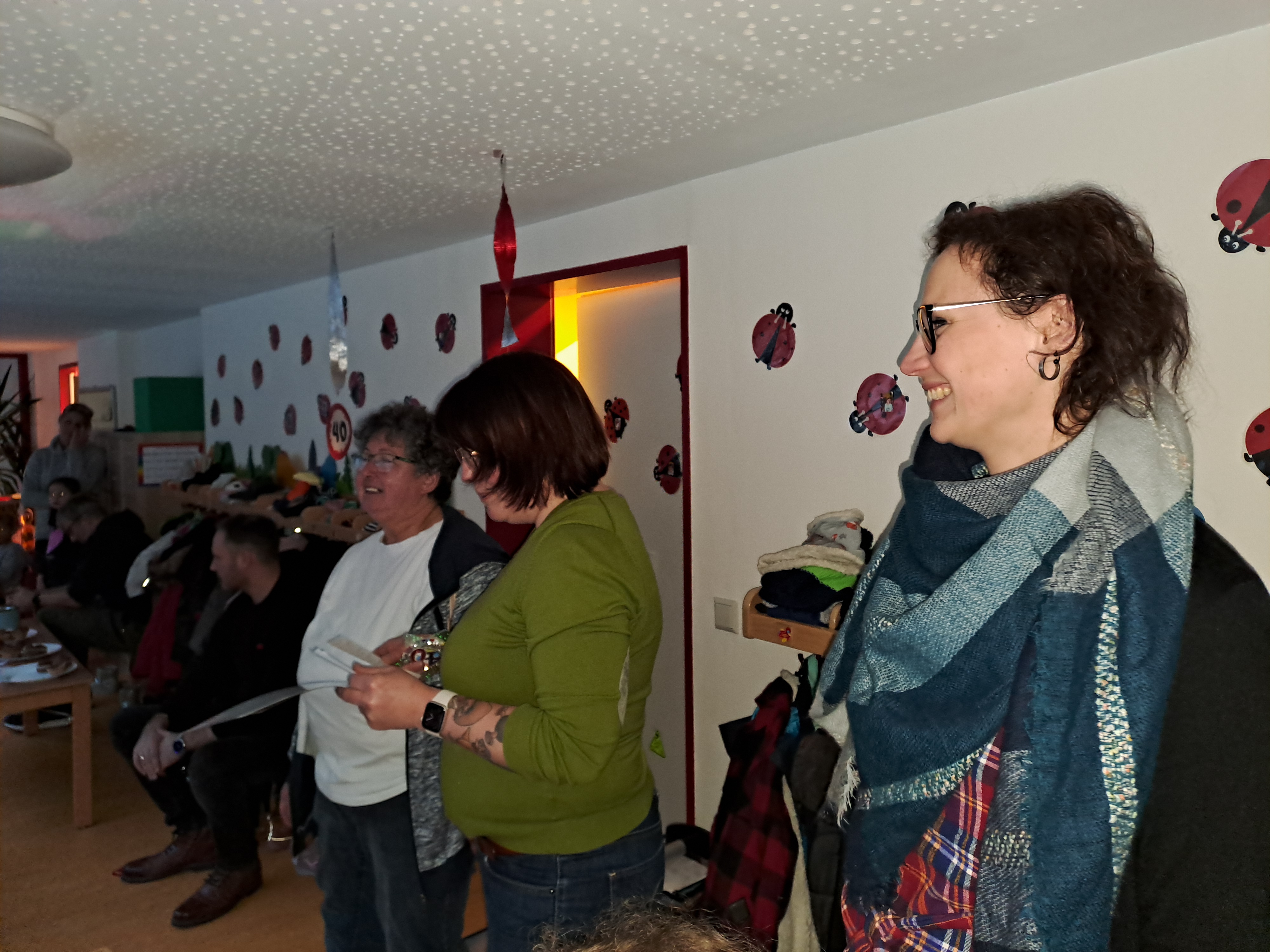 Der Vorstand nutzte die diesjährige Weihnachtsfeier der Marienkäfer-Gruppe (Gruppe der "großen" Kinder ab 3 Jahren) und lud Mitglieder des damaligen Vorstands ein, der den Kindergarten - damals Kinderspielkreis Lerbach - erst kurz vor der Einstellung Heidrun Rauthuts gegründet hatte. Sie war also auch die erste Mitarbeiterin unserer Einrichtung. Außerdem waren einige der ersten Kinder geladen, die vor 40 Jahren mit Frau Rauhut spielen, kochen, entdecken und wachsen konnten. Nicht vergessen wurden aber auch ehemalige und aktuelle Kolleginnen, darunter auch Rita Thielemann, die nur kurze Zeit nach Heidrun Rauhut ihren Dienst im Kindergarten aufnahm und bis zu ihrem Eintritt ins Rentnerinnen-Dasein Ende 2019 dort beschäftigt war.